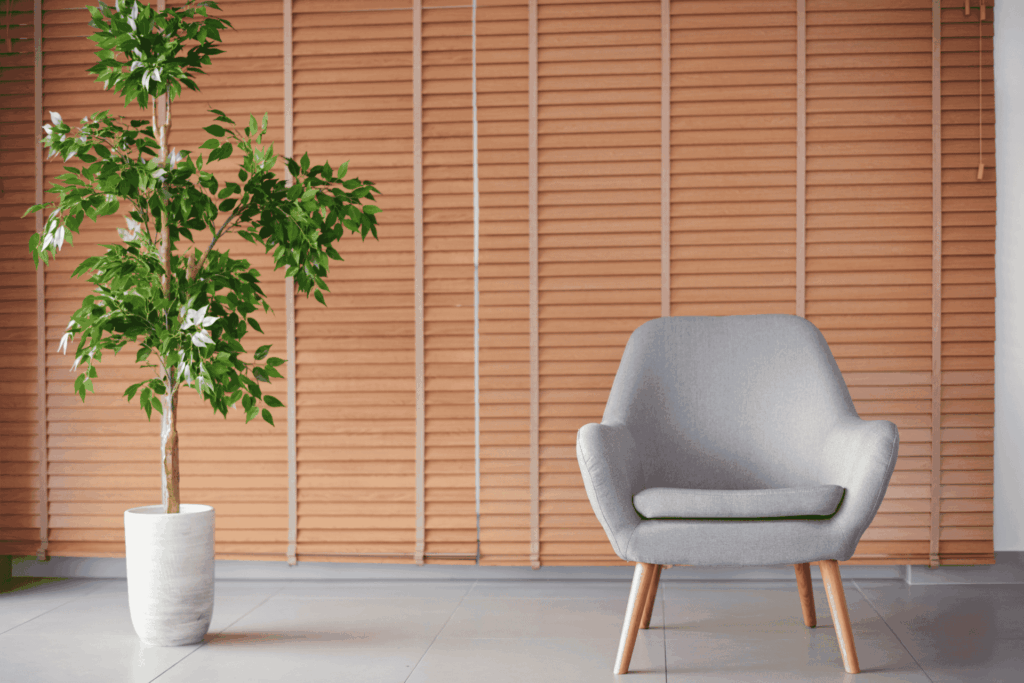 Aanvi’s faux wood blinds offer the beauty of natural timber with the strength and durability of modern materials. Moisture-resistant and easy to maintain, they are perfect for kitchens, bathrooms, and high-humidity spaces. Their realistic wood grain finish brings warmth and sophistication without the upkeep of real wood.